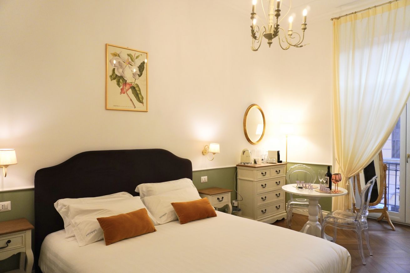 15mq, letto king-size 180x200, bagno in camera, balcone, vista città